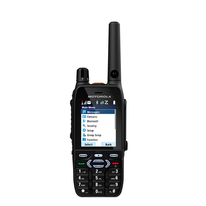 Terminal portátil TETRA ligero con pantalla en color de grandes dimensiones, teclado completo, conector accesorios rugerizado, protección IP68/67/66/65. Tecnología multi-micro (3+1), precisión GPS 1.2 metros. Terminal de radio controlable desde app por Bluetooth. Opciones de encriptación TEA y extremo a extremo. GPS y Bluetooth disponible de serie. Incluye batería de Ion Litio con tecnología IMPRES de 1900mAh que proporciona autonomías mayores de 16 horas (ciclo 5/5/90). Permite opción de batería de alta capacidad con tecnología IMPRES de 2900/3400mAh para una mayor autonomía. Potencia de salida de RF Class 3 (2.8W), Class 3L (1.8W), Class 4 (1W). Ancho de Banda 350-470MHz.